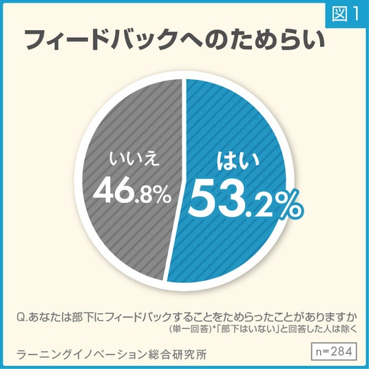 結果、53.2%が「はい」と回答し、半数以上の管理職が部下へフィードバックすることをためらうことが明らかとなりました。(図1)