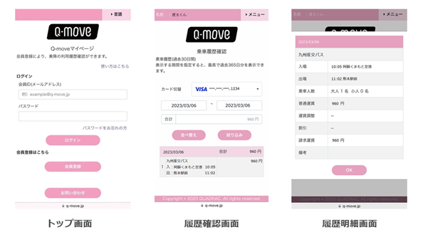 交通事業者向け決済及び認証のプラットフォームを提供するQUADRACのQ-moveサイト(https://q-move.info/)にアクセスいただき、「マイページ」の会員登録手続きの後ご覧いただけます。