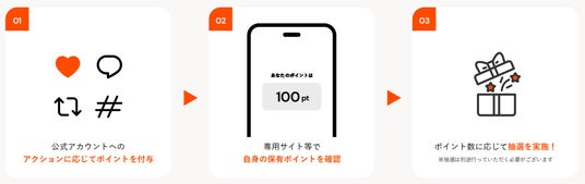 実際に、エンゲージメントポイント機能をご利用いただいたカルビー株式会社は、約4か月間かけて、公式Xのフォロワーと新フレーバーの共創プロジェクトを展開しました。ユーザーは、ハッシュタグ投稿ごとにポイントを獲得でき、ポイント数が多いほどインセンティブがもらえるチャンスが高まります。エンゲージメントポイント機能を活用することで、約4か月間という長期間のプロジェクトでもユーザーの参加モチベーションを保つことができました。