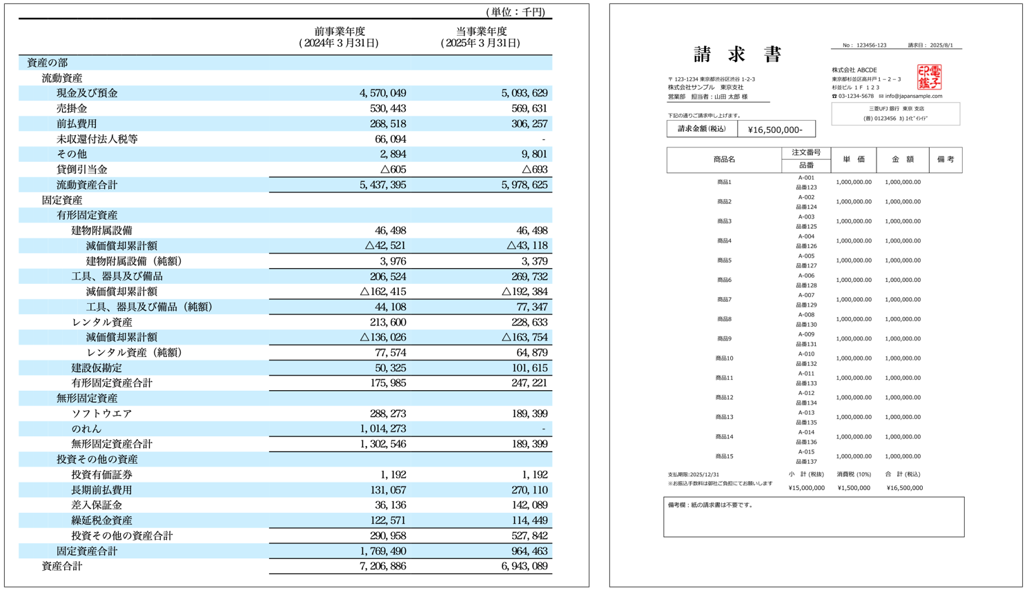読み取りが困難だった階層が分かれている財務諸表/罫線がなく1列に複数項目が入っている請求書も読み取り可能に