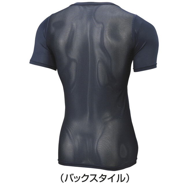 進化した(ついてくるメッシュ)の「SCβFITアンダーシャツ」。吸汗速乾「DRY SPARK」機能と伸縮性の高い2WAY素材でフィット感と柔らかな着心地を実現。背面と脇切替部には、優れた伸縮性と高い通気性が特徴の特殊構造メッシュ素材を採用しました。体の動きに合わせて伸縮することで空気孔(=メッシュ目)が開き、汗をすばやく外に発散。メッシュ目は縦方向と横方向が異なる形状になっており、動作に連動することに加え、かいた汗をすばやく蒸発させる構造を追求しました。不快な肌面のべたつきを抑え、プレーに集中できるアンダーシャツです。
