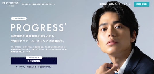 「PROGRESS」は、弁護士のファーストキャリアをサポートするためにリリースされた、法科大学院生・司法予備試験合格者・司法修習生専門の求人サイトです。