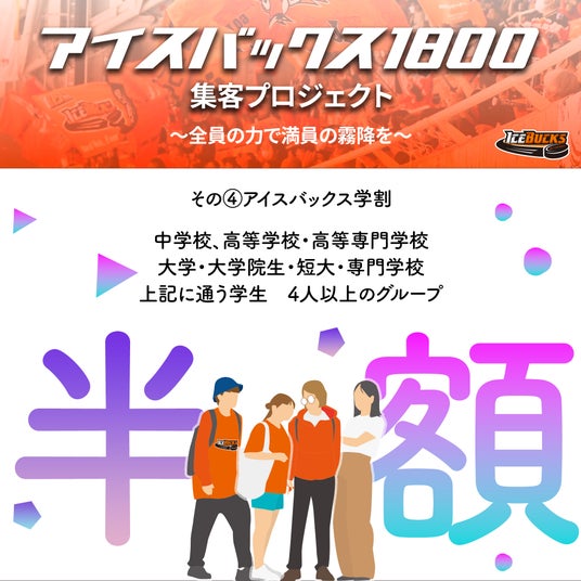 施策4.「アイスバックス学割」 4名以上のグループ観戦で指定席が半額!