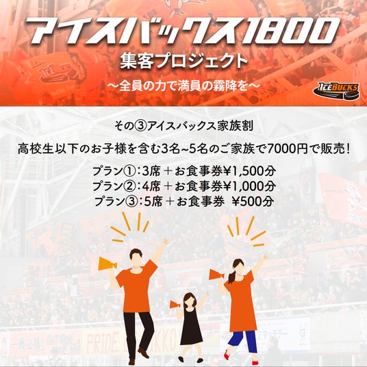 施策3.「アイスバックス家族割」 3~5名の来場で一律7000円!!