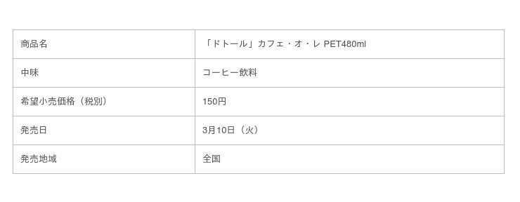 「『ドトール』カフェ・オ・レ」は、30~40代のPETボトル入りコーヒーユーザーをメインターゲットに、コーヒー専門店ドトールコーヒーならではのコク深くまろやかな味わいのコーヒーとして2015年4月より展開しています。