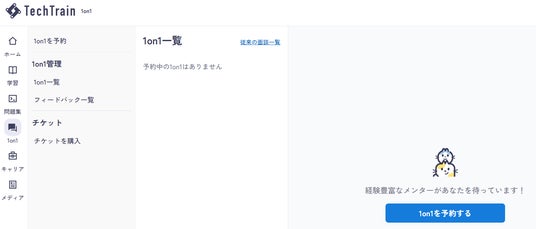 TechTrainの公式サイトよりログイン、または新規登録(無料)を行い、「TechTrain 1on1」より面談を予約してください。