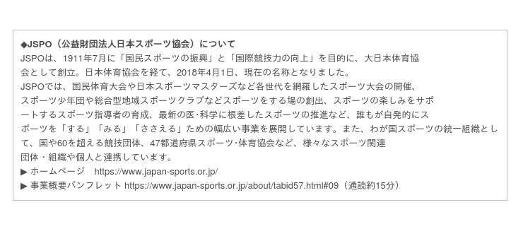 発表内容は、本競技会の発足の経緯や概要、これまでの実績や成果、今後の展望や役割をはじめ、さらに本競技会の参加選手で現在、国際競技大会等で活躍しているアスリートからのコメントなども紹介する予定です。