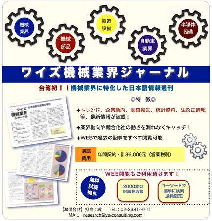 ・日本語台湾経済ニュース、機械業界ジャーナル配信