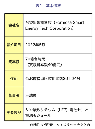 <台プラの台塑新智能科技(フォルモサ・スマート・エナジー・テック)が電池事業に再挑戦>