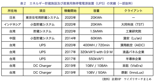 2つ目の強みは、日本や韓国のメーカーより早い段階からリン酸鉄リチウム電池の基礎研究を手掛け、製品の応用でも豊富なノウハウを持っていることだ。例えば、台プラグループは10年の時点で、台湾の大手光電メーカーが無停電電源装置(UPS)に使用していた鉛蓄電池をリン酸鉄リチウム電池に切り替えることに成功していた。