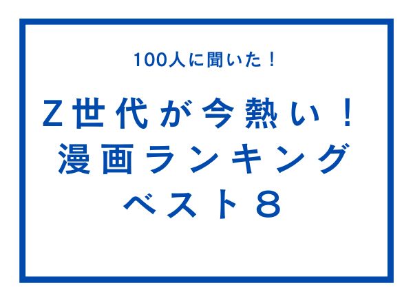 そこでこの記事では、「Z世代が今熱い漫画」について100人にアンケートを実施した結果を、理由とともに発表します。