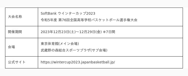 株式会社オリエントコーポレーション(東京都千代田区、代表取締役社長:飯盛 徹夫、以下「オリコ」)は、2023年12月23日(土)~12月29日(金)までの7日間、東京体育館および武蔵野の森総合スポーツプラザで開催される「SoftBank ウインターカップ2023 令和5年度 第76回全国高等学校バスケットボール選手権大会」に協賛することをお知らせいたします。