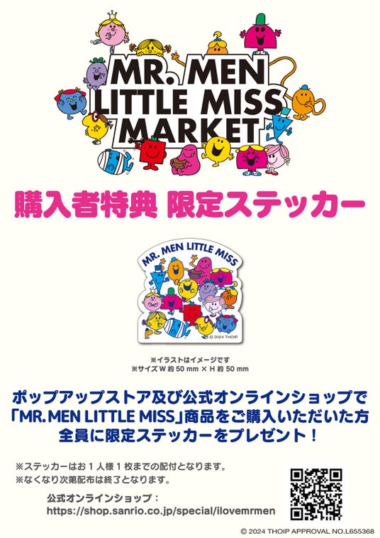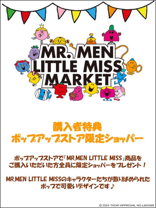 株式会社マリモクラフト(本社:東京都江東区)は「MR.MEN LITTLE MISS」のポップアップストア「MR.MEN LITTLE MISS MARKET」を2025年1月15日(水)より丸善丸の内本店にて開催いたします。