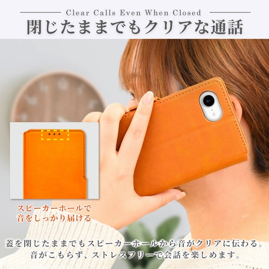 スピーカーホール付きだから、ケースを閉じたままでも音声がしっかり伝わります。通話中も音がこもらず、クリアな会話を楽しめます。
