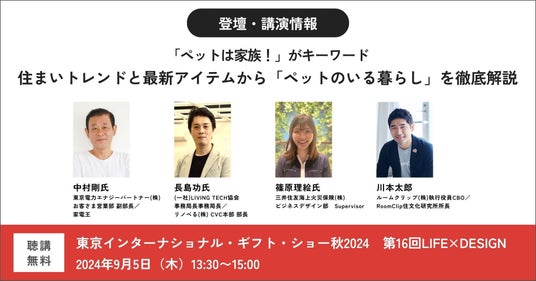 住生活の領域に特化した日本最大級のソーシャルプラットフォーム「RoomClip」を運営するルームクリップ株式会社(本社:東京都渋谷区、代表取締役CEO:高重正彦、以下ルームクリップ)の執行役員CBO兼RoomClip住文化研究所所長の川本太郎が、東京インターナショナル・ギフト・ショー秋2024 第16回LIFE×DESIGN(9/4~9/6開催、会場:東京ビックサイト)に登壇いたします。