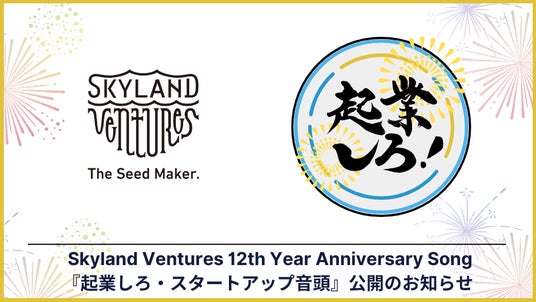 Skyland Ventures(本社:東京都渋谷区、パートナー・CEO:木下慶彦、以下SV) は、2024年8月31日をもって、2012年8月31日のSkyland Ventures1号ファンド設立以来12周年となることから、12周年記念ソング『起業しろ・スタートアップ音頭』を公開したことをお知らせします。
