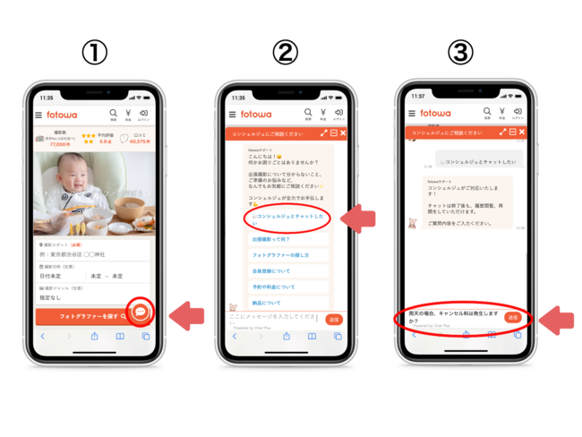 5.fotowaのサービスについての説明や、お困りごとを解決する方法を提案させていただきますので、内容をご確認ください。メッセージのやりとりは何回でも可能です。