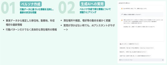 「ユーザープロ」は2024年よりサービスを開始した生成AIツールです(※1)。行動記録を基に対象となる人物の行動パターンや嗜好を深掘りし、人の記憶の外にある無意識を可視化することが可能です。消費者の記憶ではなく、確かな行動記録に基づいた分析(性別、年齢、職業、家族構成、趣味など)をおこない、生成AIが事実データから“仮想の消費者”を作り出せるツールとして利用されています。