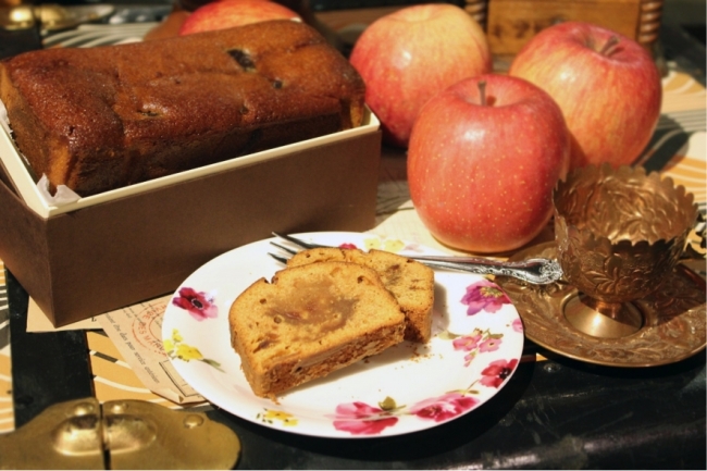 スペシャルスイーツプレートや特別なお客様にのみご試食いただいていた「ニコラ秘密のほろにがキャラメルとりんごのしっとりパウンドケーキ」。