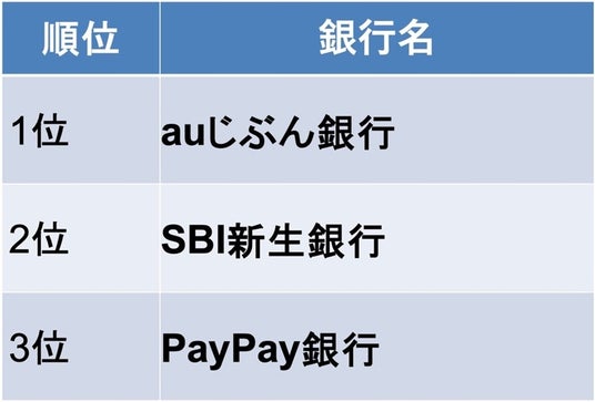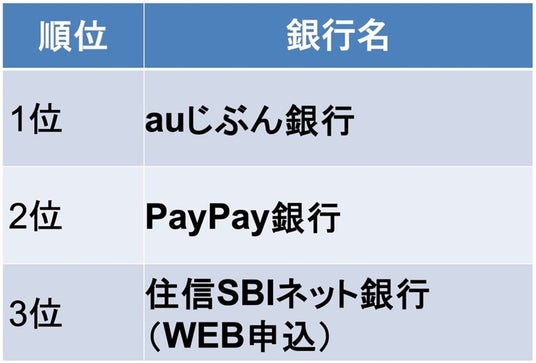 1位はauじぶん銀行となりました。金利と保障のどちらも魅力的な内容となっており、最初にチェックするユーザーが多かったものと思われます。2位のSBI新生銀行は金利引き下げキャンペーンを実施しており、集客施策が奏功していると考えられます。3位はPayPay銀行となり、こちらも金利引き下げキャンペーンを実施しており多くのユーザーに注目されたものと思われます。