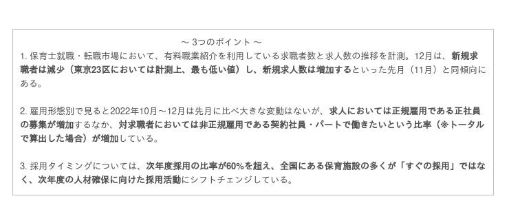 ■保育士の就職活動 実態月次調査(2022年12月)