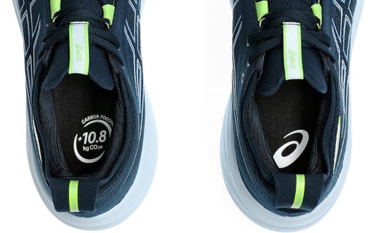 「GEL-NIMBUS 26」のカーボンフットプリントは10.8kg CO2eで、業界平均よりも25%低い数値です。※