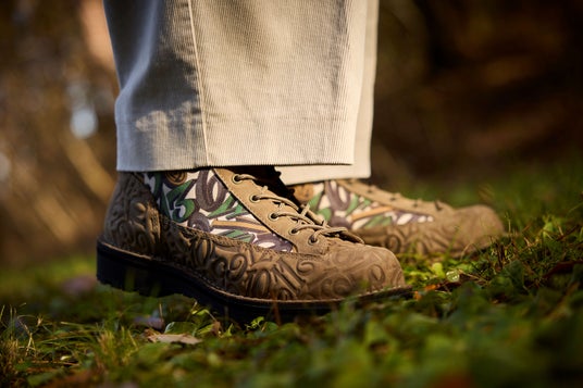 「DANNER FIELD」は堅牢なつくりと高いデザイン性が人気のシリーズです。「DANNER FIELD」をベースとしたコラボレーションブーツのアッパーデザインには、レザー部分にフランク ミュラーを象徴するビザン数字をモチーフにした立体的な型押しを施しています。内部やボトムには最新の「DANNER FIELD R」の仕様を採用し、ユニセックス展開にしました。サイドにはこのモデルのためにデザインされたグラフィックをプリントし、フランク ミュラーが腕時計の世界で追求し続ける独創的な芸術性を融合させています。ヒールとシュータンにはフランク ミュラーとダナーのロゴが刻印された特別仕様です。さらに、ライニングには防水透湿素材『GORE-TEXメンブレン』を搭載し、ソールにはVIBRAM社との共同開発によるTraction Cascadeを使用しています。