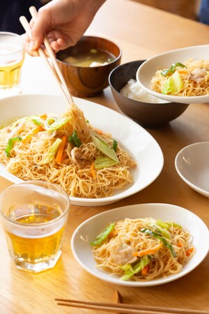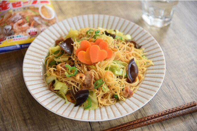 時勢が反映されていますね……! 「ケンミン焼ビーフン」はお子さまから大人までどなたでも作っていただけること、具材をたくさん入れると1袋で2~3人前になるのでシェアしてお楽しみくださいね。