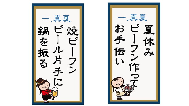 「ビーフン川柳キャンペーン2023」は、8月18日のビーフンの日企画として実施。今回は、“真夏” “恋” “知らんけど”の3部門を設け、7月18日から8月6日の期間募集し、弊社内で応募作品を審査の上、各大賞と佳作を決定しました。当初表彰は大賞のみでしたが、想定以上に応募いただいたことで、急遽佳作賞を設けました。