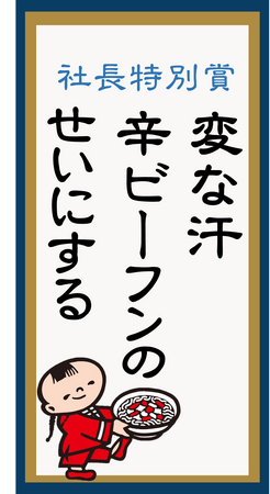 【社長特別賞】「変な汗 辛ビーフンの せいにする」 ペンネーム:たあ さん