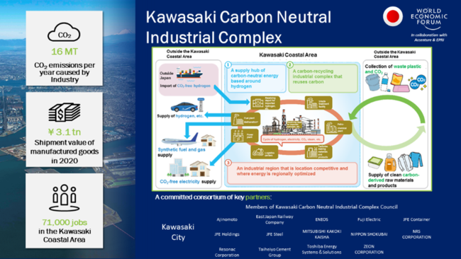 こうした中、この度川崎市が、世界経済フォーラムの主導する「産業クラスターのネットゼロ移行イニシアティブ(英語表記:Transitioning Industrial Clusters Towards Net Zero Initiative)※1」に、「川崎カーボンニュートラルコンビナート(英語表記:Kawasaki Carbon Neutral Industrial Complex)」として、日本で初めて参画をいたしました。
