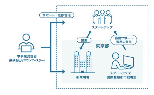 「現場対話型スタートアップ協働プロジェクト」は、東京都庁の都政現場における課題に対し、優れたスキルや技術を有するスタートアップとの対話を通じて共に解決を図るプロジェクトです。スタートアップと課題を抱える都政の現場とを接続し、その解決に向けた取組を機会、資金の面からサポートします。