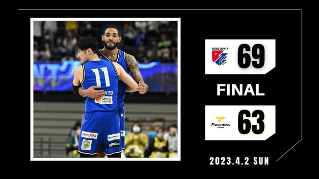 2023年4月2日(日)に開催されましたBリーグ第29節【ライジングゼファーフクオカvs.香川ファイブアローズ】において“福岡69-63香川”の結果となりましたことお知らせいたします。