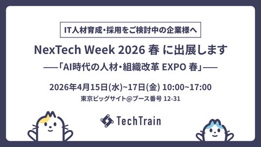 「テクノロジーを支える、全ての人のターミナルに。」を掲げるTechTrain(株式会社TechBowl 本社:東京都千代田区、代表取締役社長:小澤 政生、以下「TechTrain」)は、2026年4月15日(水)~17日(金)に東京ビッグサイトで開催される「NexTech Week 2026 春」に出展いたします。