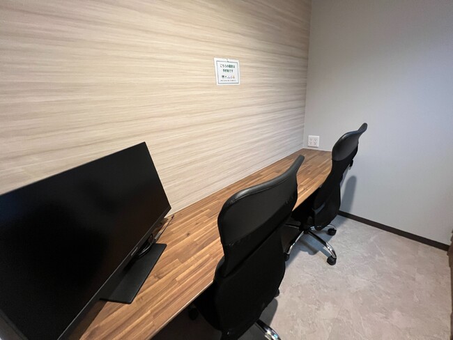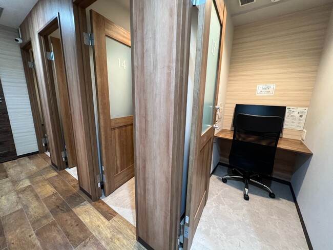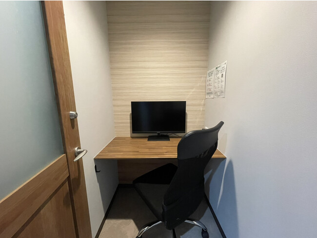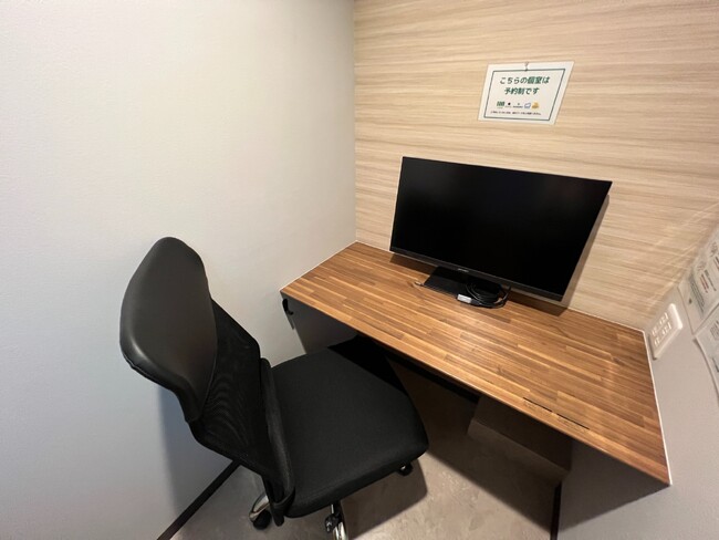 店内には、2名用個室もご用意。話し合いながら行う資料作成や2名で参加するweb会議の場所としても最適です。