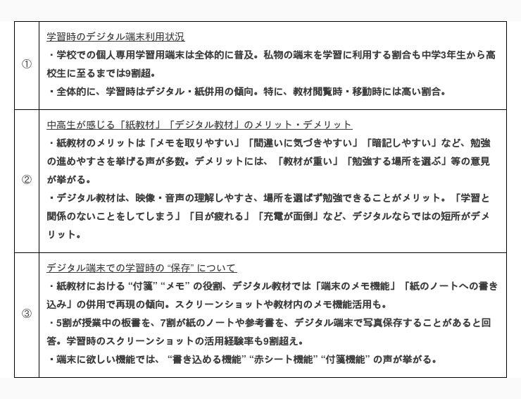 『勉強時の「デジタル」と「紙」の使い分けに関するアンケート調査』トピックス