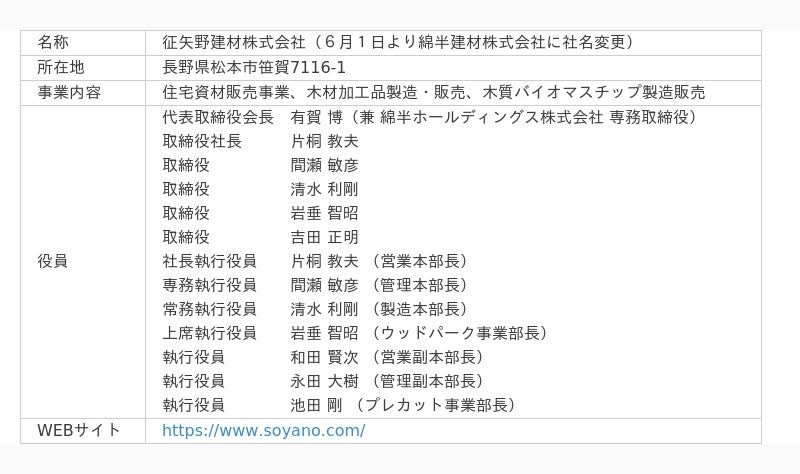また、2024年6月1日付で征矢野建材株式会社は「綿半建材株式会社」に社名変更いたします。