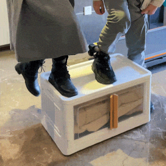 Yunoboxは材料にPPとABS素材を採用し、重量は約1.9kgと軽量ですが、耐荷重はなんと90kg!大人が上に乗っても壊れません!