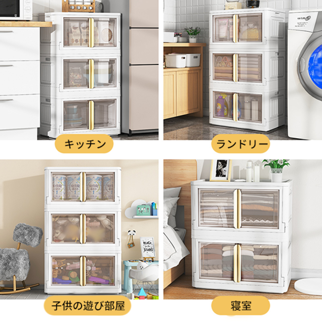 従来から多く使用されている収納ボックスは上からしか開けられないのが一般的で、一番下の物は取り出しにくいという欠点があります。