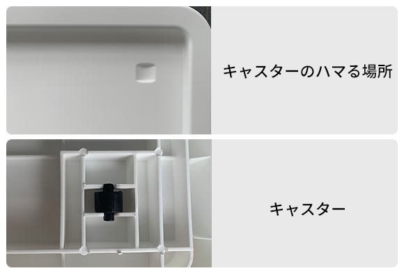 蓋にはキャスターのハマる場所があり、上積みしても横ズレしません。