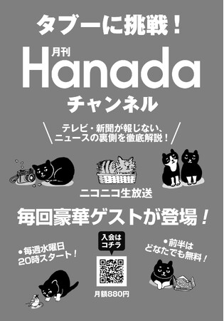 月刊『Hanada』(飛鳥新社刊・花田紀凱責任編集)がニコニコ動画で新番組をスタート。毎週多彩なゲストを招きYouTubeでも話せないここだけの話を放送!