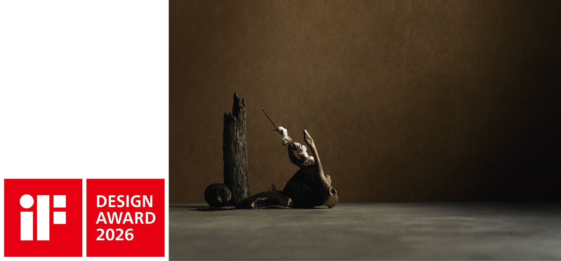 リサイクル⽷や⾙殻、焼き物の土といった自然素材を原材料に取り入れ、シンプルながらも素材本来の質感と⾊調にこだわった壁紙ブランドです。同賞の評価基準である「Idea(理念)」「Form(造形)」「Function(機能)」「Differentiation(差別化)」「Sustainability(持続可能性)」の5項目のうち、特に、Ideaや、Form、Differentiationにおいて高いスコアを獲得しました。