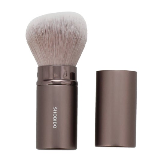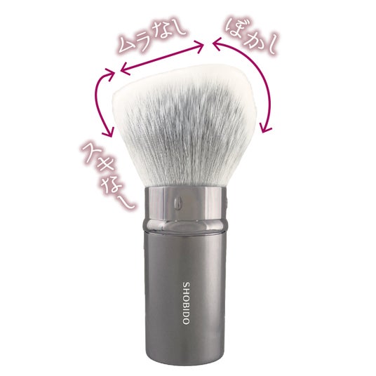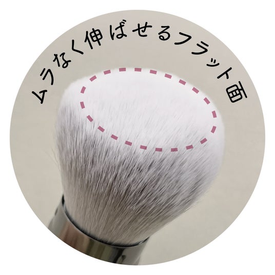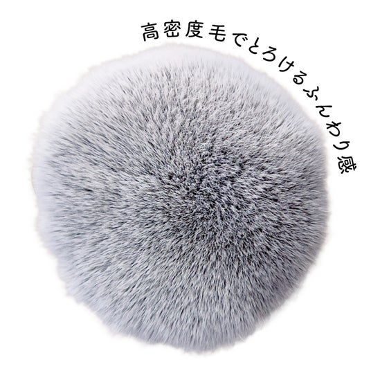 肌あたりがよく粉含みの良い⽑質を採用。高密度ブラシが肌にピタッと密着、メイク直しにもオススメ。持ち運びに便利なキャップ付き。