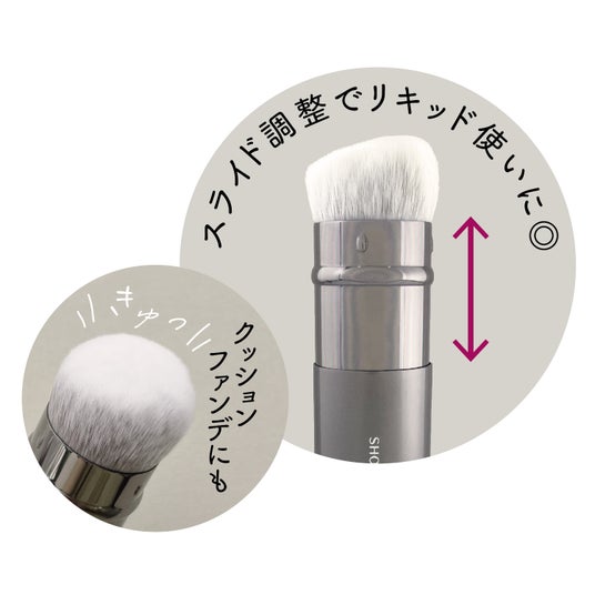 口金部分をスライドできるので、お使いのファンデーションの種類、チークやハイライトなど、用途に合わせて⽑の密度を調整できます。