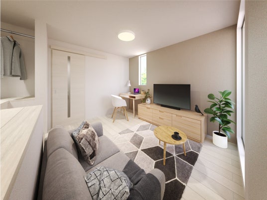 5万人の入居者とオーナーの要望を具体化した当物件は、独自の複層構造(スキップフロア)により床下クロークと高さ約140cmのロフトスペースを確保。これにより単身アパートが抱える収納の問題を解消し、木造のテーマである上下間の音の問題も緩和。空間を最大限に活用することで1Kのお部屋がまるで1LDKのお部屋かのような、居住空間にゆとりを提供します。