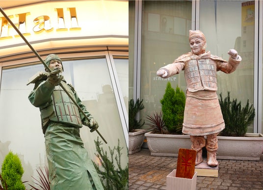 第2回:2021年11月 横浜中華街発展会協同組合の協力で、日本大通会場に加えて中華街会場でも実施しました。中華街オリジナル・スタチューとして兵馬俑1号2号を作成し、Chinatown80前で展示しました。