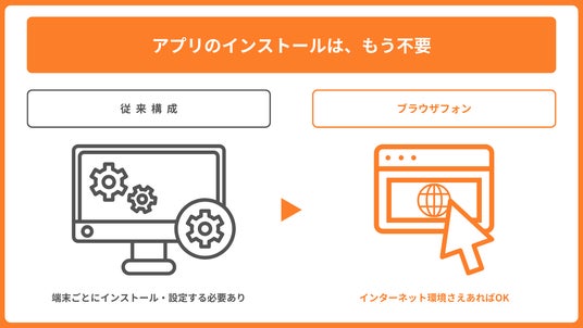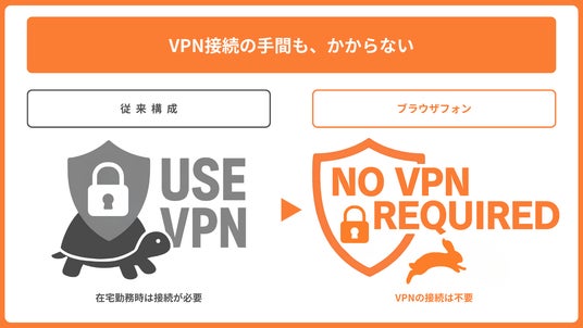 なお、従来必須だったVPN経由の接続は、通信の遅延や障害発生の原因になることがありましたが、ブラウザフォンを利用することで、VPNを起因とした遅延・障害のリスクも解消されます。