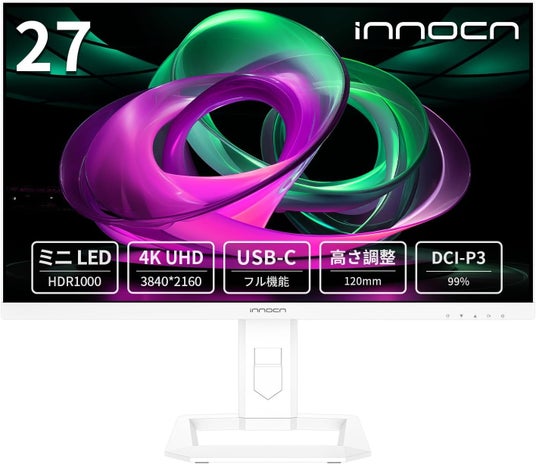 INNOCN 27インチ ミニLED 4Kモニター HDR1000 HDMI/DP/USB-C 65W 非光沢 VESA対応 ブルーライト軽減
