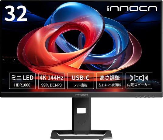 INNOCN 32インチ 4K モニター ミニLED 90W スピーカー付き 144Hz 1ms