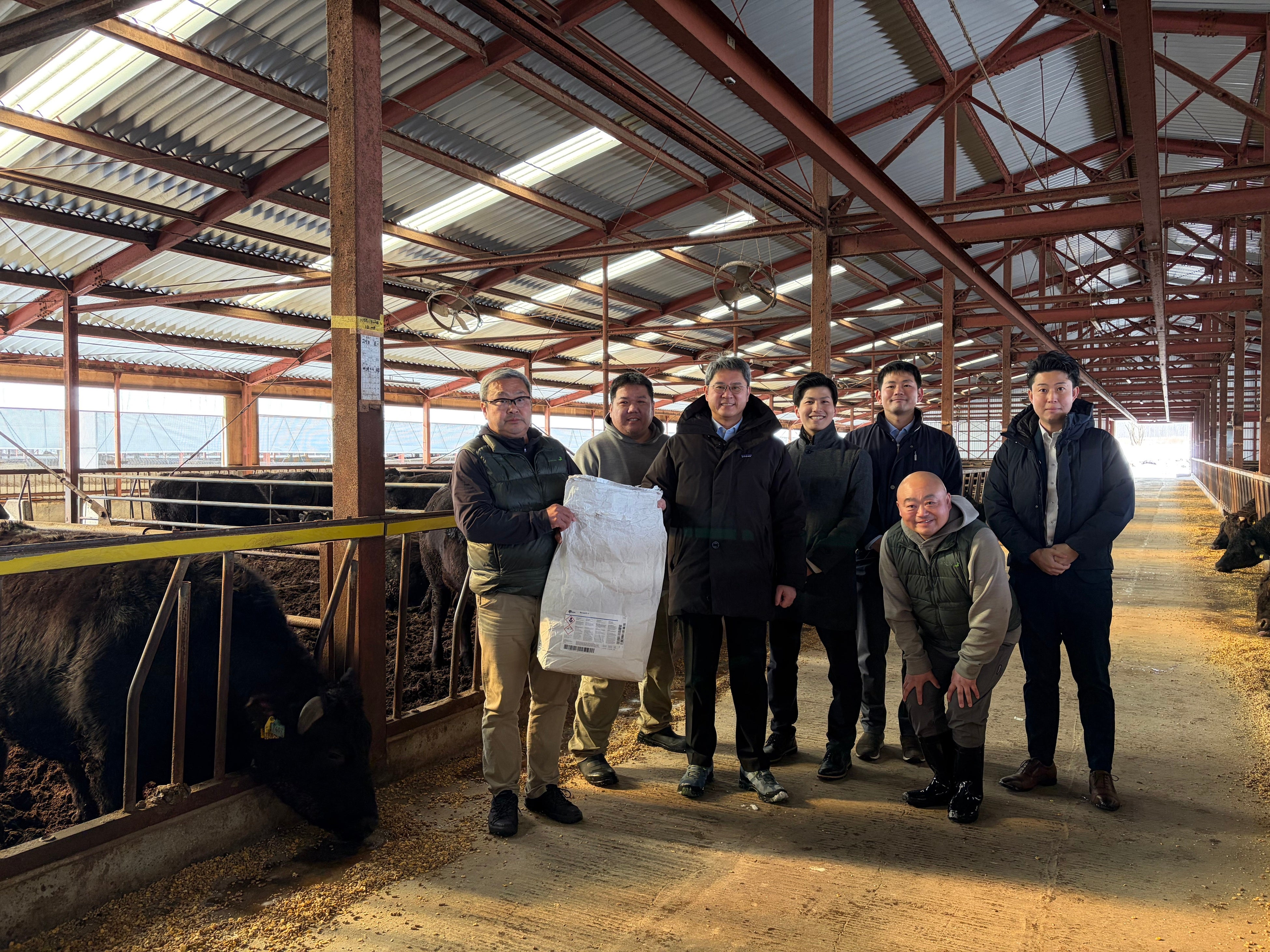 兼松とdsm-firmenichは2025年7月、ボベアー(R)の活用による環境価値の創出と、同価値を付与した畜産品の販売を共同で推進する連携協定書を締結しました。本実証はその一環として、3社で黒毛和牛への最適な給与条件や方法、適切な記録手法など、将来的なJ-クレジット創出に向けた検証を行いました。